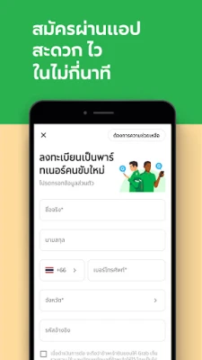 การเข้าร่วมเป็นส่วนหนึ่งของชุมชนผู้ขับขี่แกร็บนั้นเรียบง่ายและสะดวกสบาย กระบวนการเริ่มต้นเส้นทางกับเราได้รับการออกแบบมาให้รวดเร็วและไม่ซับซ้อน เพียงไม่กี่ขั้นตอนผ่านแอปพลิเคชันก็พร้อมนำเสนอโอกาสในการสร้างรายได้ที่ตอบโจทย์ไลฟ์สไตล์ของคุณ แกร็บพร้อมเป็นสะพานเชื่อมให้คุณก้าวสู่การเป็นผู้ประกอบการอิสระที่ประสบความสำเร็จ