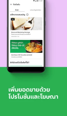 แอป GrabMerchant ออกแบบมาเพื่อลดความซับซ้อนของการดำเนินงานออนไลน์ ให้คุณมุ่งเน้นในสิ่งที่ทำได้ดีที่สุด ตั้งแต่การจัดการคำสั่งซื้อทั้งหมดที่เข้ามาได้อย่างราบรื่นบนอุปกรณ์ของคุณ ไปจนถึงการเพิ่มยอดขายด้วยฟังก์ชันส่งเสริมการตลาด คุณสามารถสร้างโปรโมชั่นดึงดูดใจและใช้เครื่องมือโฆษณาภายในแอปเพื่อเปลี่ยนลูกค้าขาจรให้เป็นลูกค้าประจำ นอกจากนี้ การเข้าถึงข้อมูลเชิงลึกเกี่ยวกับผลประกอบการยังช่วยให้คุณตัดสินใจทางธุรกิจได้อย่างชาญฉลาด และเสริมความรู้ด้านการดำเนินงานอย่างต่อเนื่องกับ GrabAcademy เพื่อการเติบโตที่ไม่หยุดยั้ง