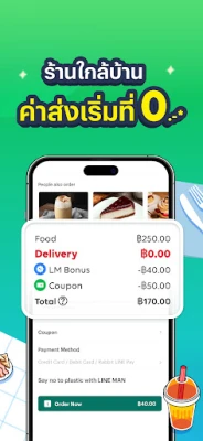 LINE MAN มุ่งมั่นเพื่อคนไทย ให้บริการส่งอาหารที่คุ้มค่าเกินใคร ด้วยค่าส่งเริ่มต้น 0 บาท รับสิทธิ์คนละครึ่ง และส่วนลดสูงสุด 60% เติมเต็มทุกมื้อของคุณอย่างคุ้มค่าและสะดวกสบาย