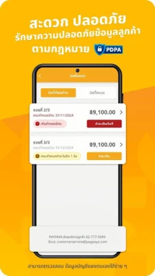 การเริ่มต้นใช้งาน PAYPAYA ทำได้ง่ายดาย: เพียงยืนยันตัวตนด้วยบัตรประชาชน เลือกจำนวนเงินและระยะเวลาผ่อนชำระที่คุณต้องการ เมื่อสินเชื่อได้รับการอนุมัติ เงินจะถูกโอนเข้าบัญชีทันที คุณจะได้รับแจ้งเตือนสถานะสินเชื่อและการชำระเงินผ่านอีเมลและ SMS อย่างสม่ำเสมอ เพื่อให้คุณไม่พลาดทุกข้อมูลสำคัญ