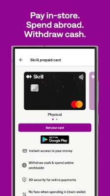 เพลิดเพลินกับการชำระเงินออนไลน์ที่รวดเร็วและปลอดภัย เพียงใช้บัญชี Skrill คุณก็สามารถทำธุรกรรมบนเว็บไซต์ต่างๆ ได้ทันที ทั้งด้านกีฬา เกม และการเทรดฟอเร็กซ์ โดยไม่ต้องกังวลเรื่องการเปิดเผยข้อมูลธนาคารหรือบัตรเครดิต นอกจากนี้ Skrill ยังมอบความสะดวกสบายด้วย Skrill Prepaid Mastercard® ที่ช่วยให้คุณเข้าถึงยอดเงินในบัญชีได้ทุกที่ทุกเวลา ทั้งการใช้งานออนไลน์ ในร้านค้า หรือถอนเงินสดจากตู้ ATM บัตรนี้ไม่ได้ผูกกับบัญชีธนาคารหลักของคุณ เพิ่มความปลอดภัยอีกขั้น และยังรองรับการชำระเงินแบบไร้สัมผัสผ่าน Google Wallet™ พร้อมฟังก์ชันการระงับบัตรได้ทันทีผ่านแอป หากเกิดการสูญหายหรือถูกขโมย